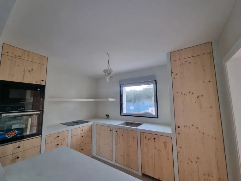 La aplicación de microcemento en cocinas ofrece superficies continuas, resistentes y de fácil