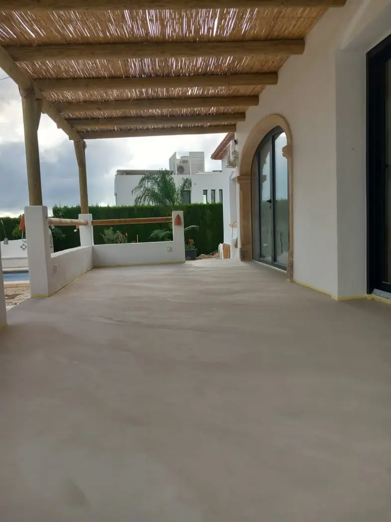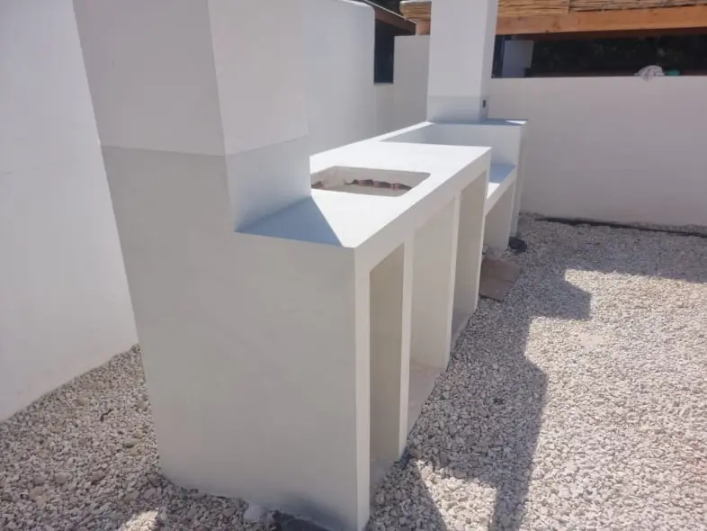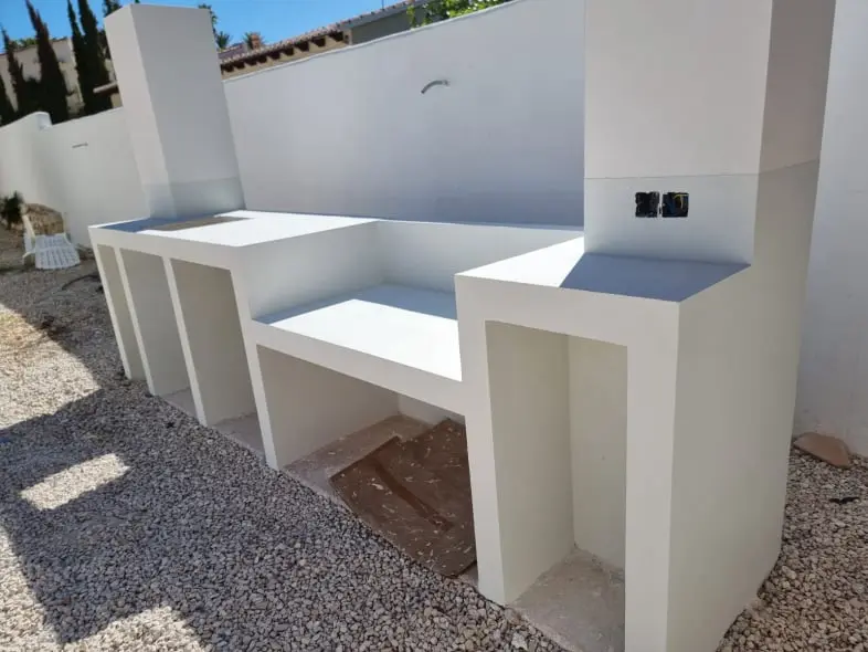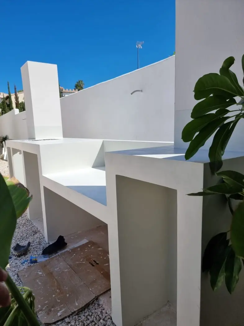 La aplicación de microcemento en una barbacoa logra un acabado moderno, resistente y fácil de